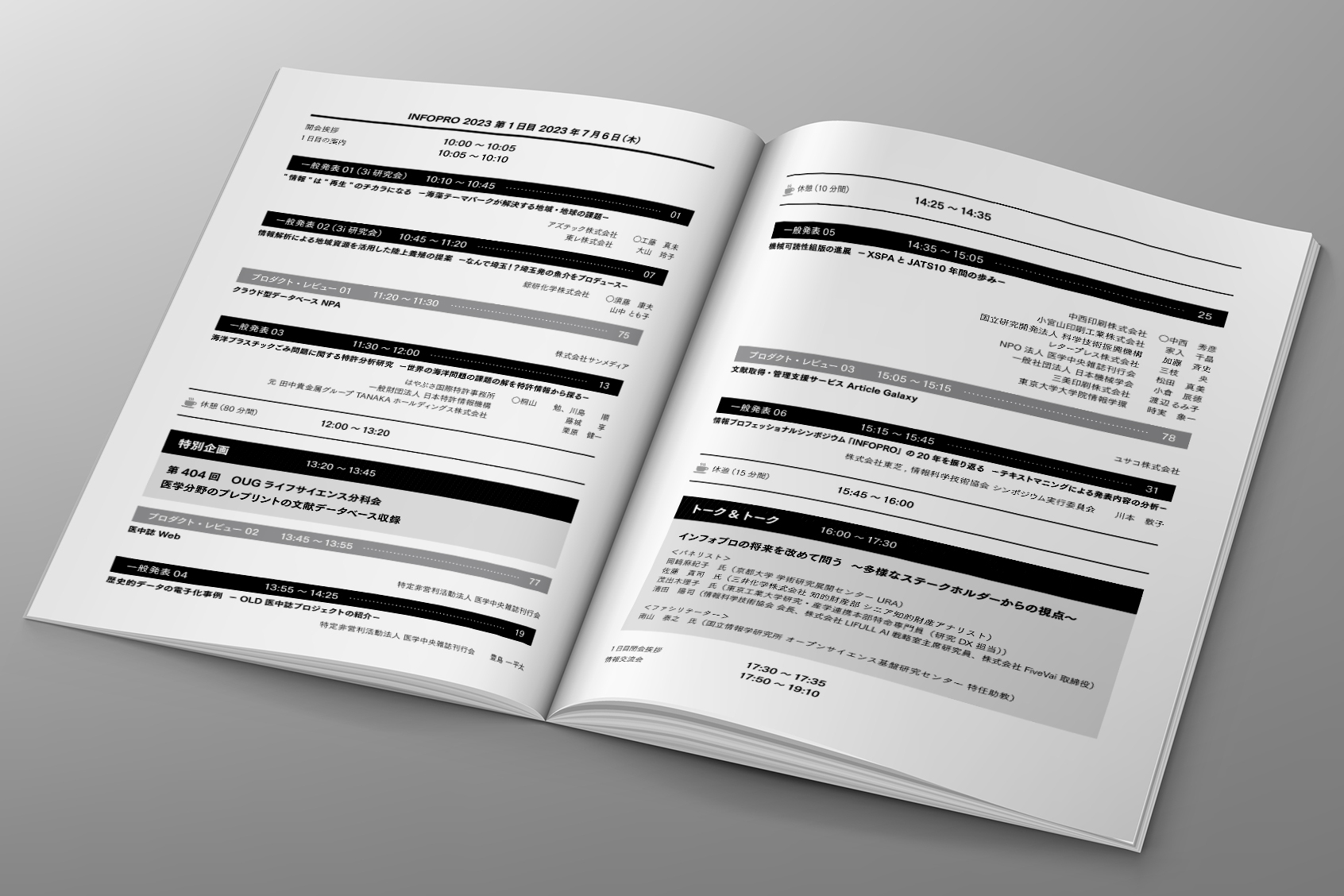 大学や研究所などで自身の考えや研究成果をまとめたコンテンツとして発表される研究論文の冊子を、発表イベントで使用するプログラムとしての機能も合わせ持った冊子制作としてご依頼いただきました。